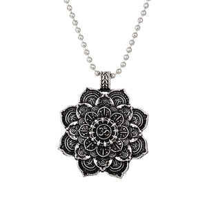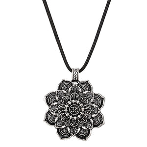 The Om symbol is centered in a one of a kind intricate lotus. Each lotus petal design is masterfully embossed in a beautiful and intricate design that vibrates truly mystic energy. This Antique Silver Om Lotus Mandala Pendant Necklace is a perfect emblem that gives a deep significance.