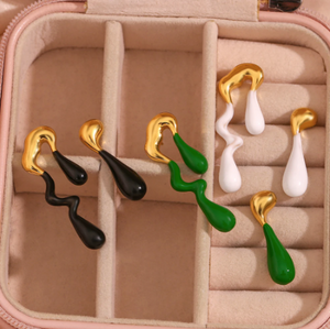 For the fun, quirky soul: Asymetrical Enamel Drip Earrings. Make a statement and add a splash of color with these one-of-a-kind, 'drippin' cute accessories! Wear them on one ear or both to add some personality to your 'fit! So unique and so cute, just like you!