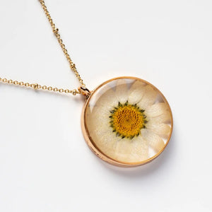 Each pendant is unique featuring a resin pendant containing a beautiful flower on a sleek chain.