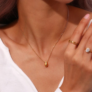 This Gold Drop Necklace is the perfect accessory for any special occasion. Elegant yet unique, it is sure to turn heads with its dazzling 18 karat gold plated finish. Let its charm add a little sparkle to your evening!