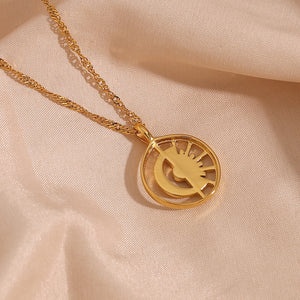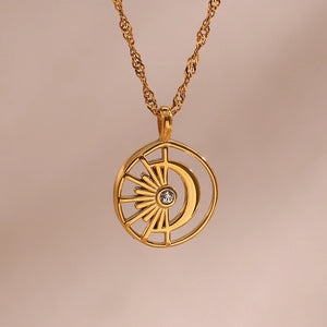 Hollow Moon and Sun Pendant Necklace