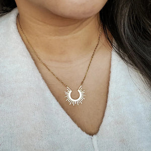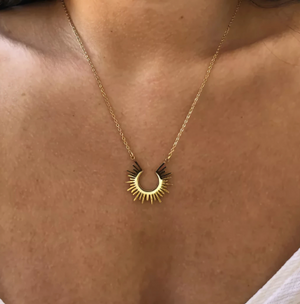 Bring some sun-kissed sass to your 'fit with this fun and fashionable Sunburst Necklace! Glam up any outfit with this dazzling beauty and show off your sun-loving style. And who could resist its radiance? Not us!
