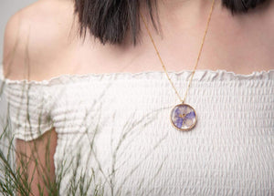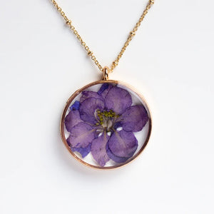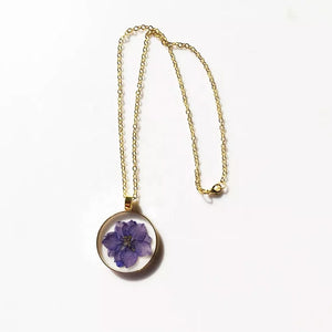 Each pendant is unique featuring a resin pendant containing a beautiful flower on a sleek chain.
