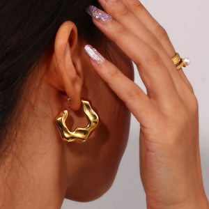 Our Wavy Unique Hoops are like no other! Stand out from the crowd with these eclectic, one-of-a-kind pieces of jewelry. You'll feel stylish and adventurous, like no one else can duplicate your look! All your friends will be talking about you and your unique fashion statement. So don't wait – get your Wavy Unique Hoops today!